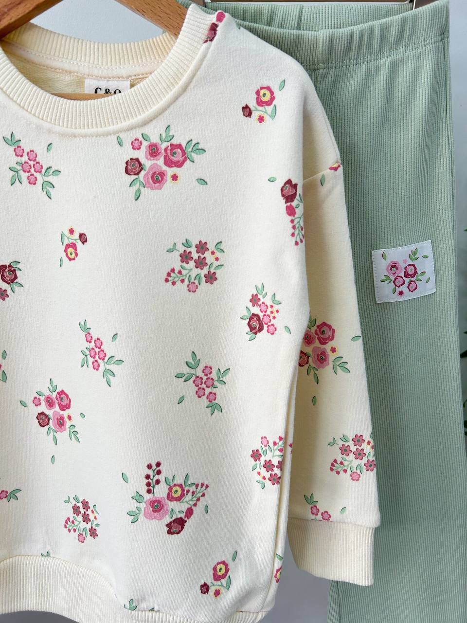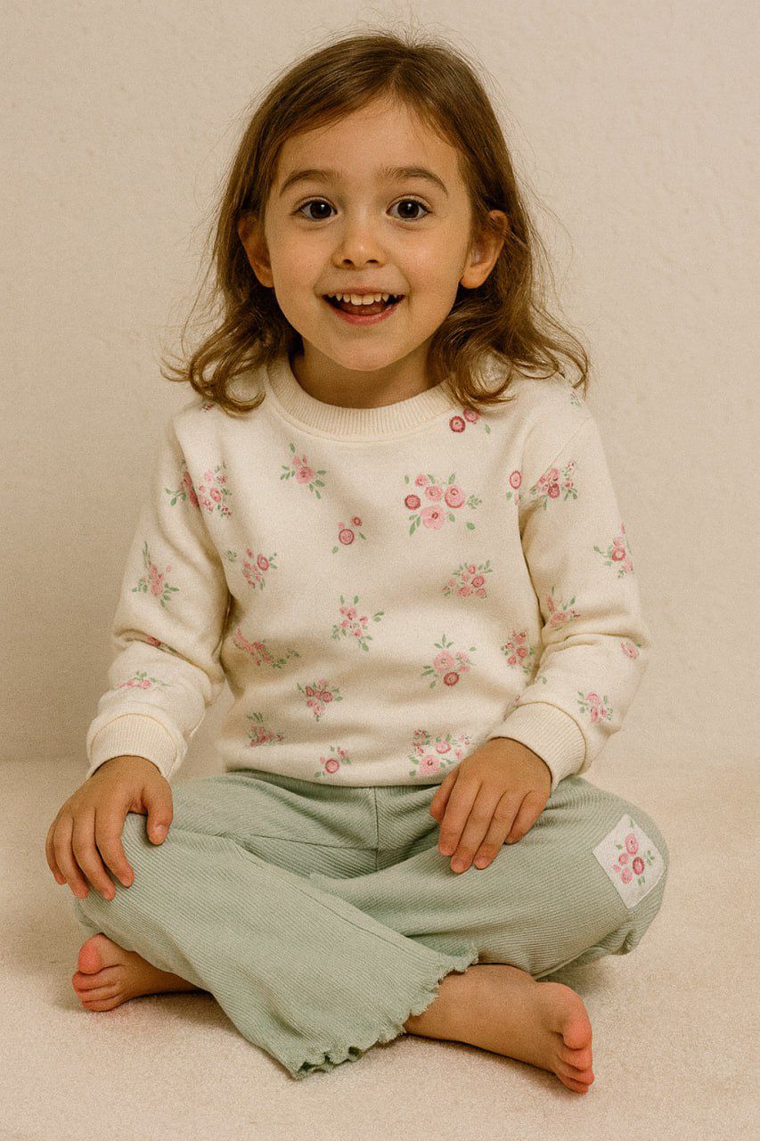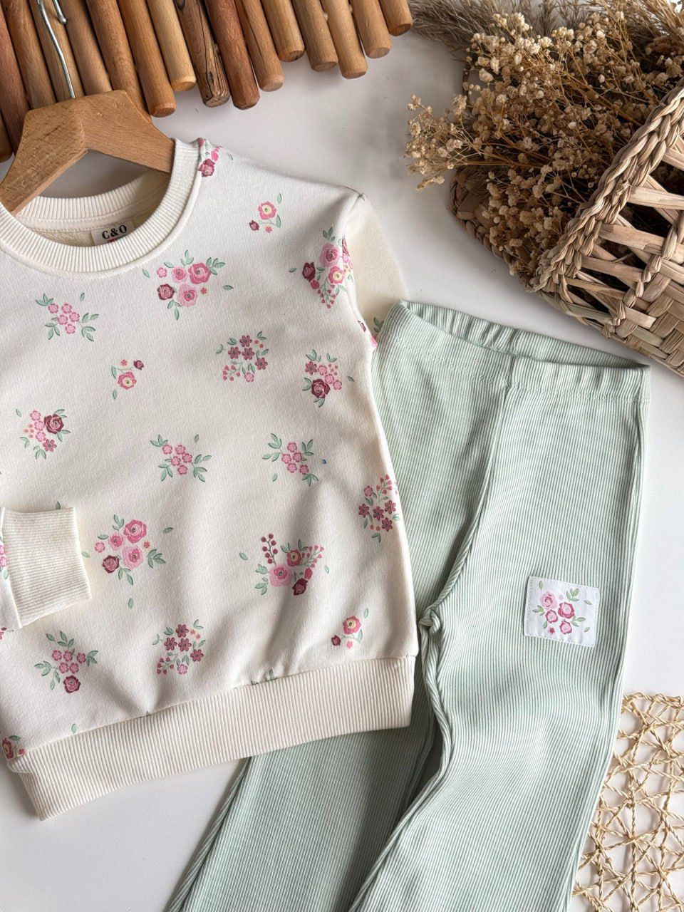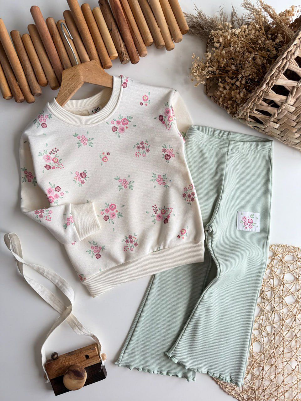 ÇİÇEKLİ ÜST RİBANA İSPANYOL PAÇA TAYT KIZ ÇOCUK TAKIM %100 PAMUK 3 İPLİK ÜST FIRÇALI ALT RİBANA KUMAŞTIR. 2-8 YAŞ ARALIĞINDADIR.