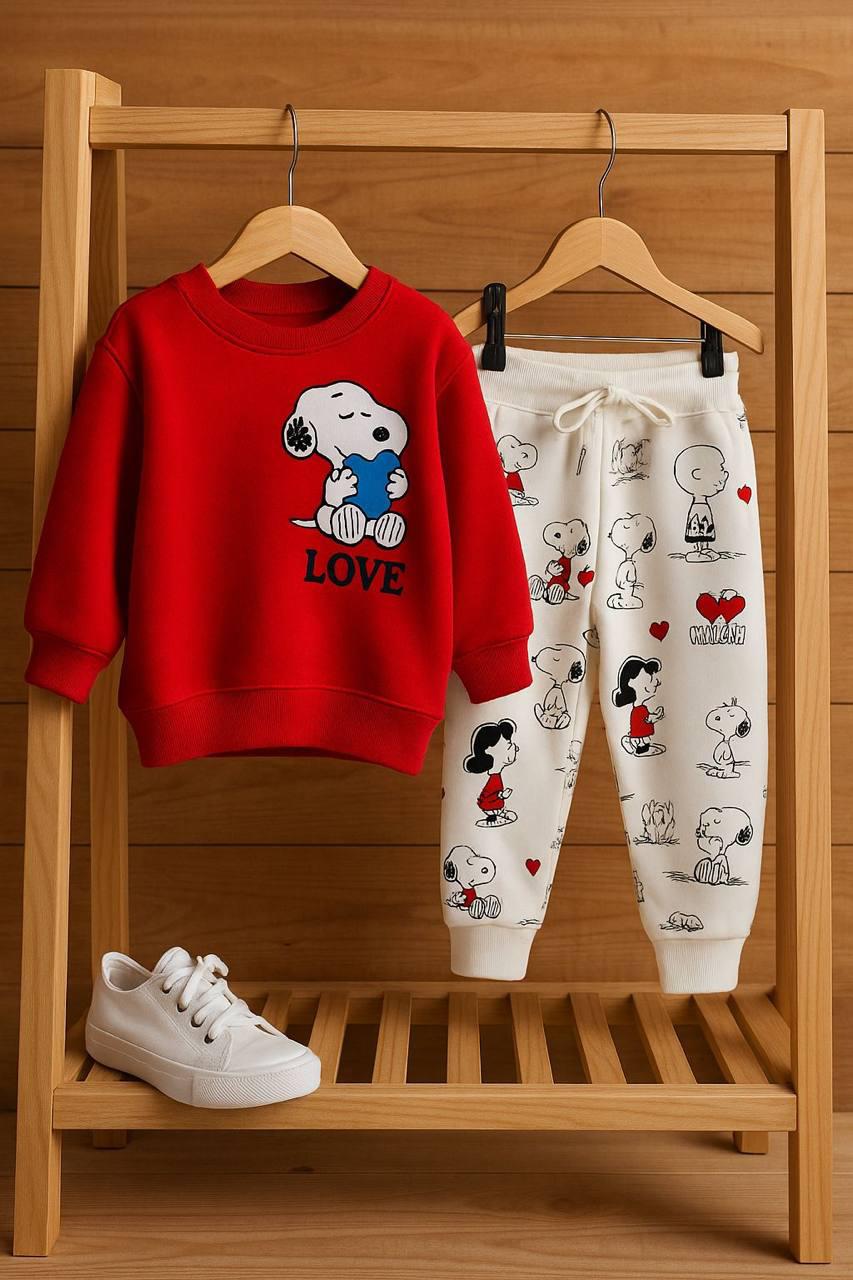 PEANUTS BASKILI KIRMIZI KIZ VE ERKEK ÇOCUK TAKIM