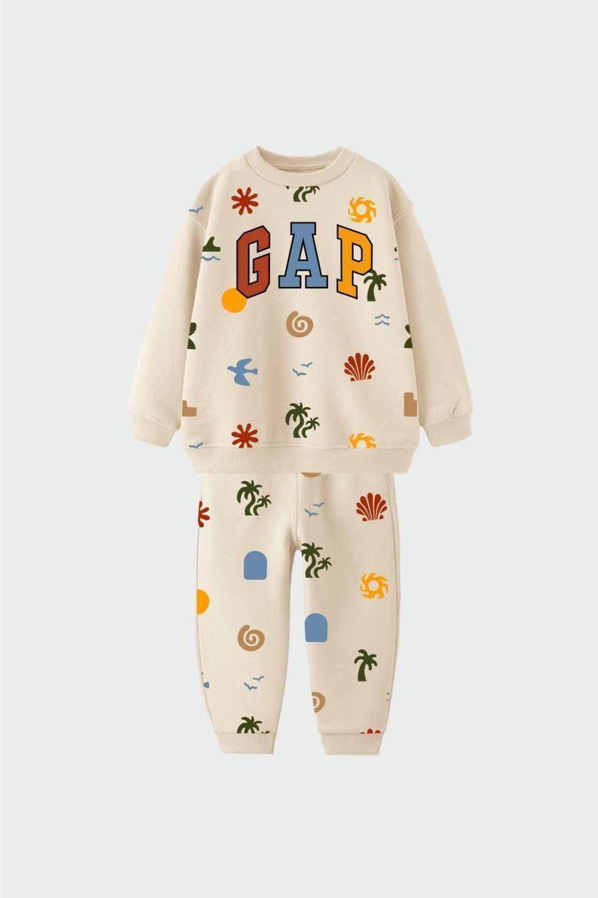 Renkli Baskılı Marka Krem Renk Erkek Çocuk Takım %100 pamuk 3 iplik fırçalı kumaştan üretilmiştir.