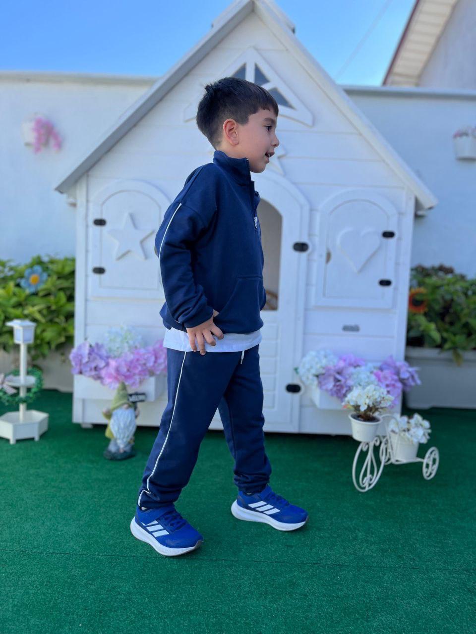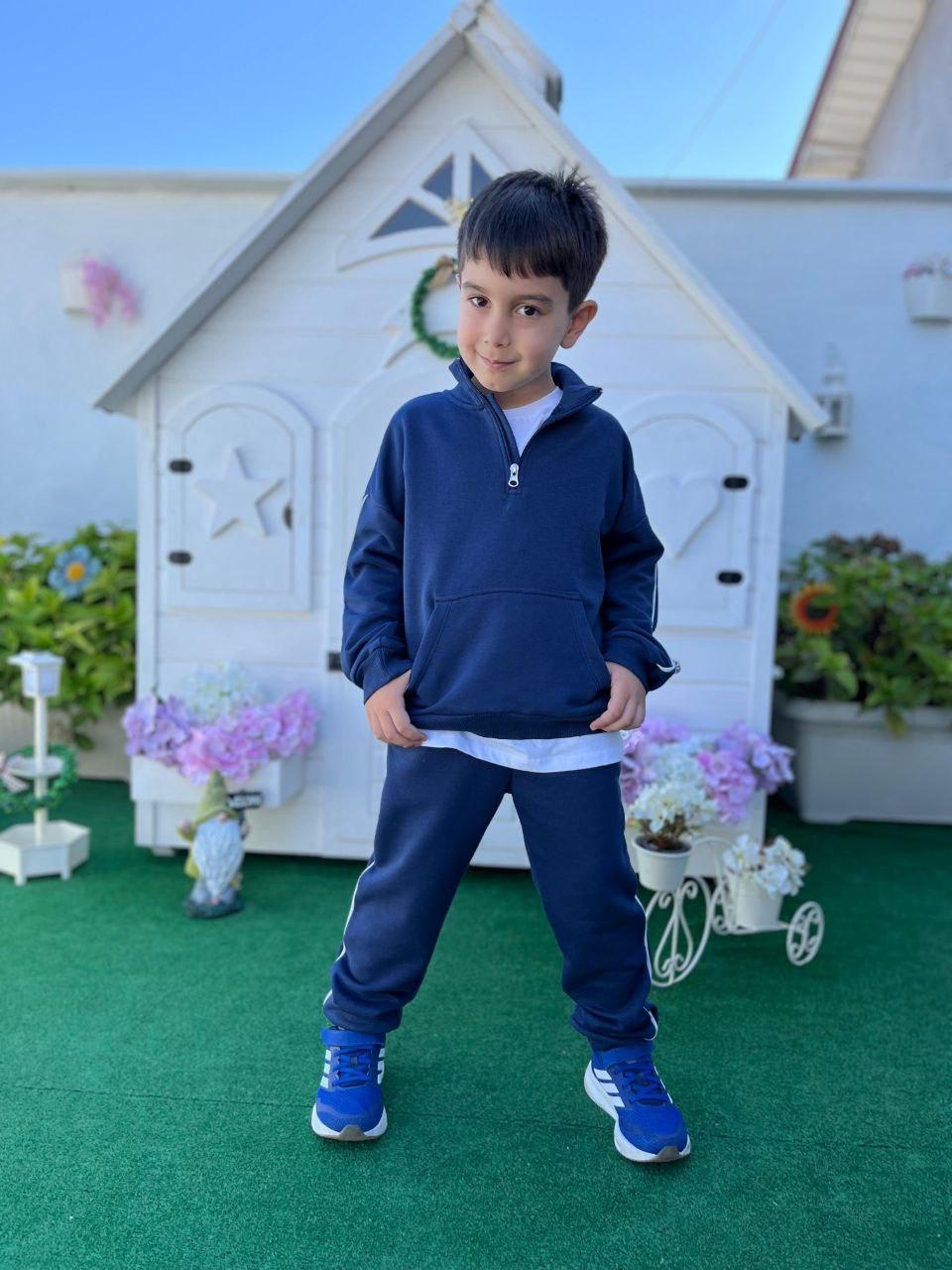 Yarım Fermuar Detaylı Erkek Çocuk Lacivert Eşofman Takım %100 pamuk 3 iplik fıçalı kumaştan üretilmiştir.3-10 yaş bedenleri mevcuttur. Tam kalıptır.